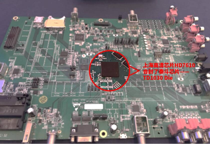 会上,上海高清发布了最新一代直播卫星户户通主芯片HD7610,HD7610具有五大特征:高性能64-bit双核CPU、3D图形加速器Mali 450核、全流程国密加解密算法、细腻优美画质增强技术和精简可靠的系统方案设计。其中,系统的主要特点包括:集成ABS-S解调器、集成北斗/GPS、高速DDR4控制器、高速网络接口,这其中集成北斗/GPS所合封的正是泰斗自主研发的第四代芯片产品——TD1030Die。